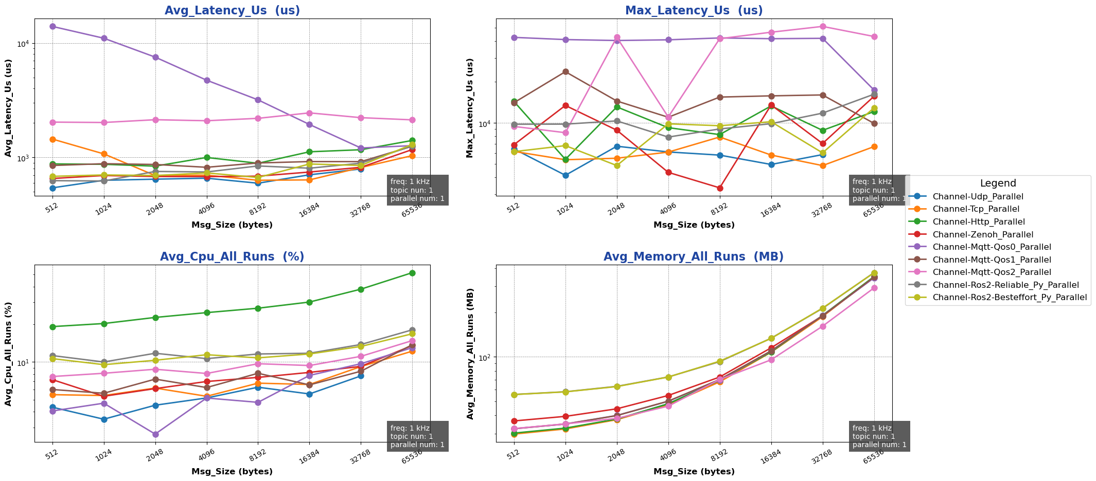 pkg_size: 256 B ~ 64 KB (2^8 ~ 2^16, increasing by powers of 2)
