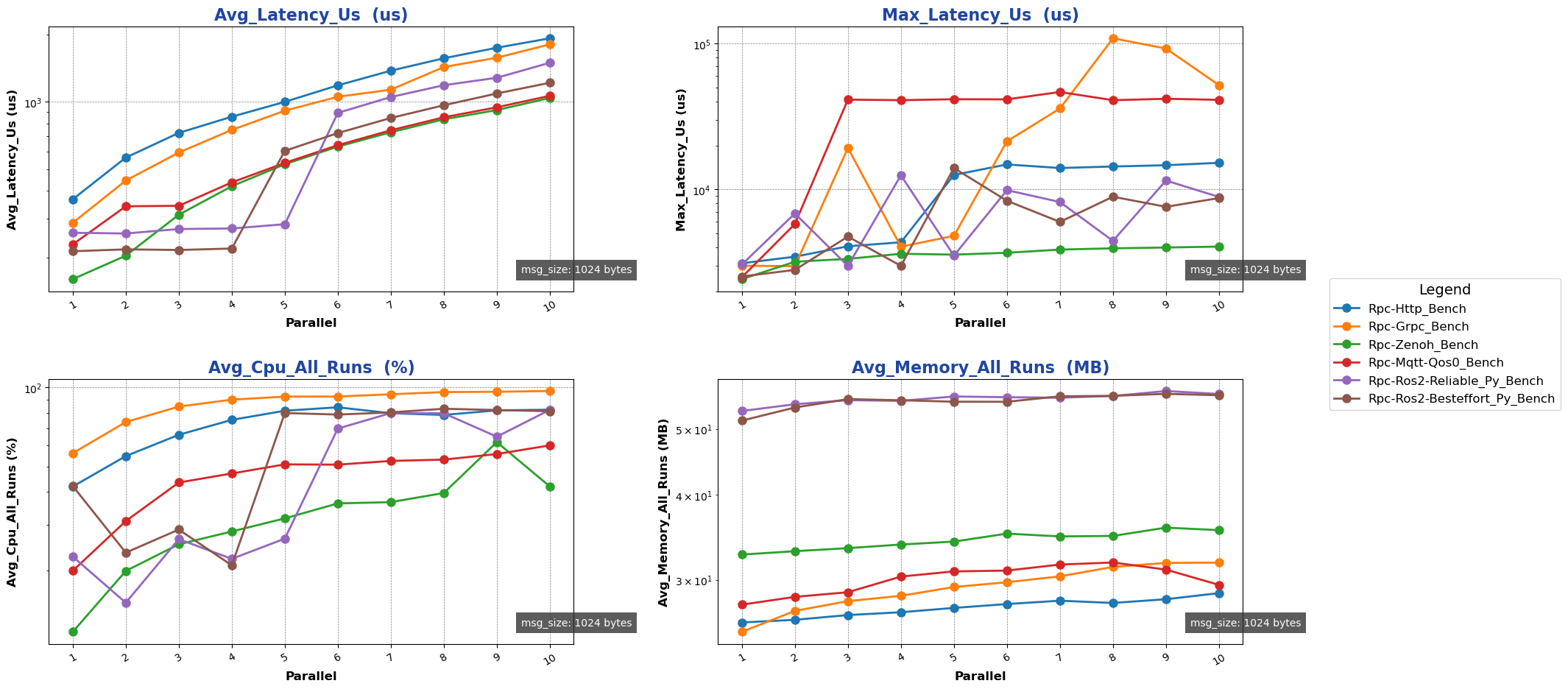 Tests were conducted using AimRT-py. The test items are as follows: