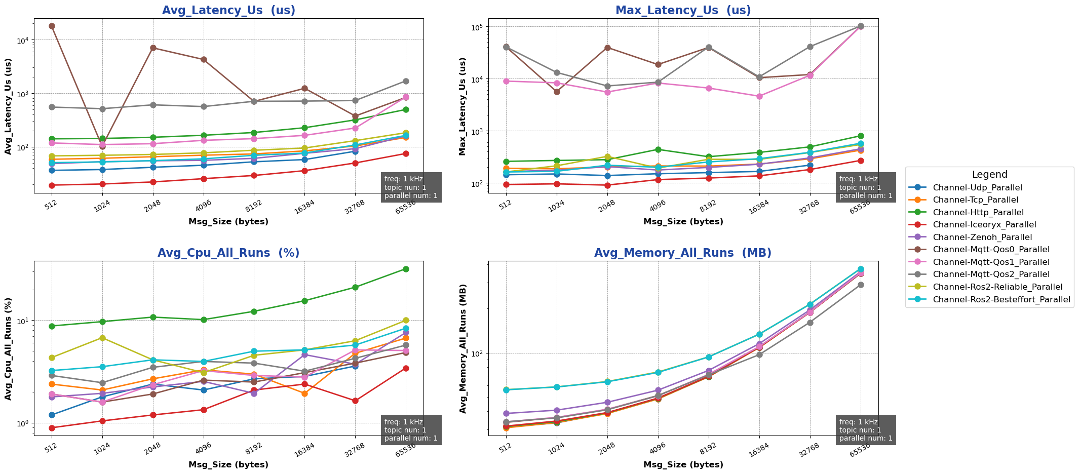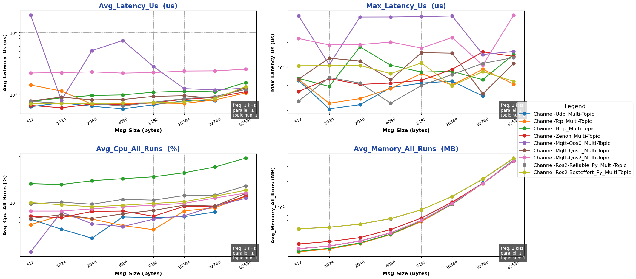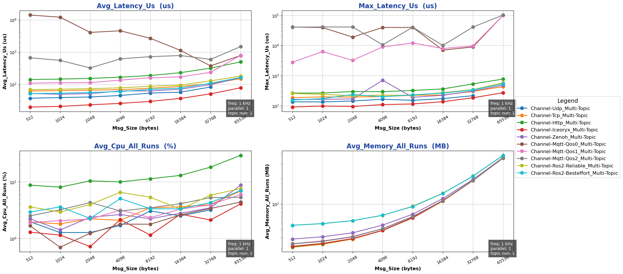 • Test Purpose: Evaluate the performance of the single-machine cross-process Channel backend in multi-topic mode under different packet sizes