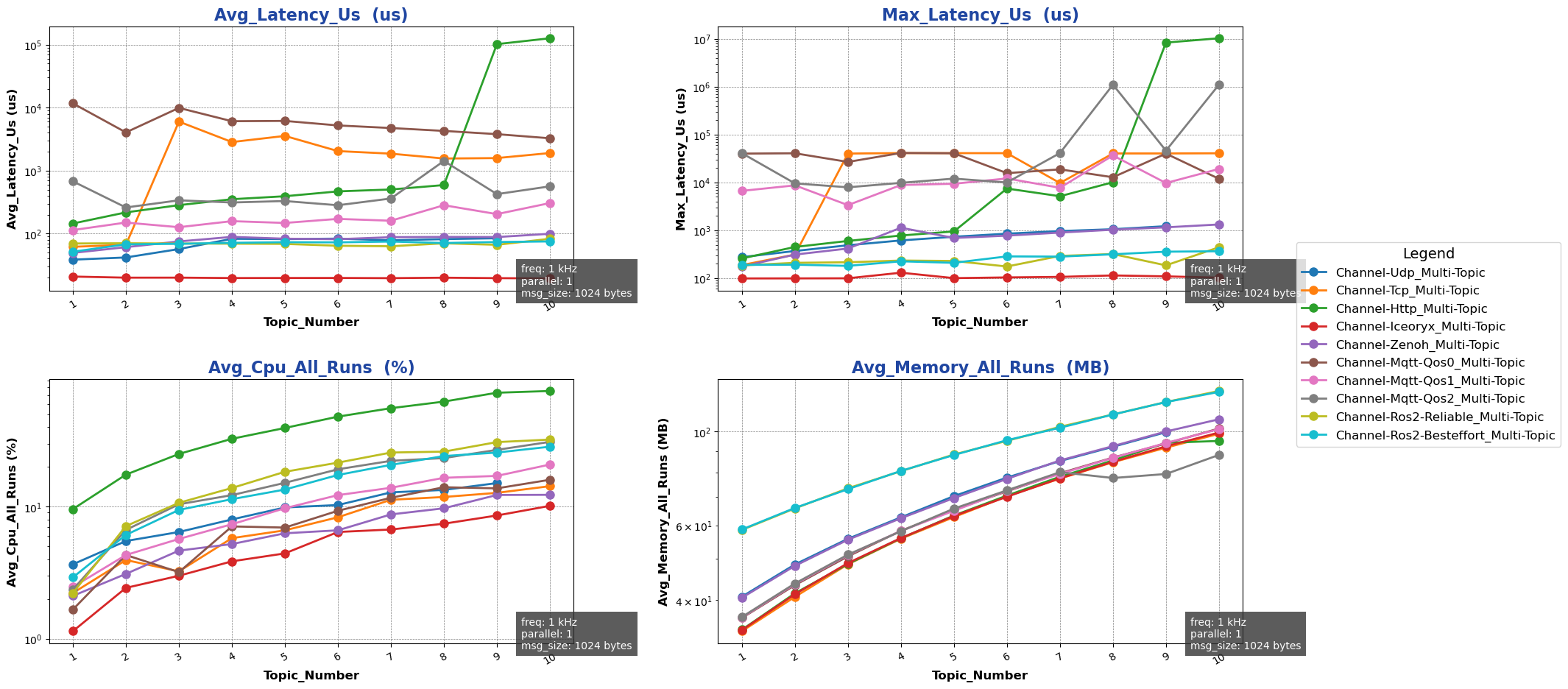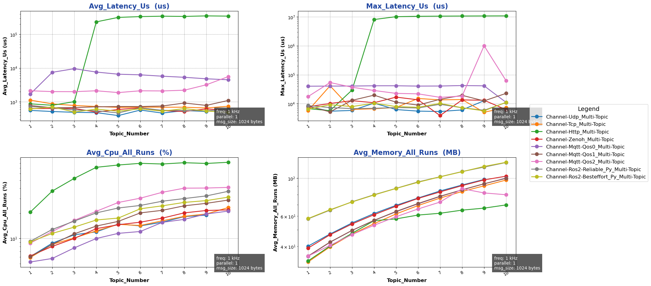 • Test Purpose: Evaluate the performance of the single-machine cross-process Channel backend in multi-topic mode under different topic counts