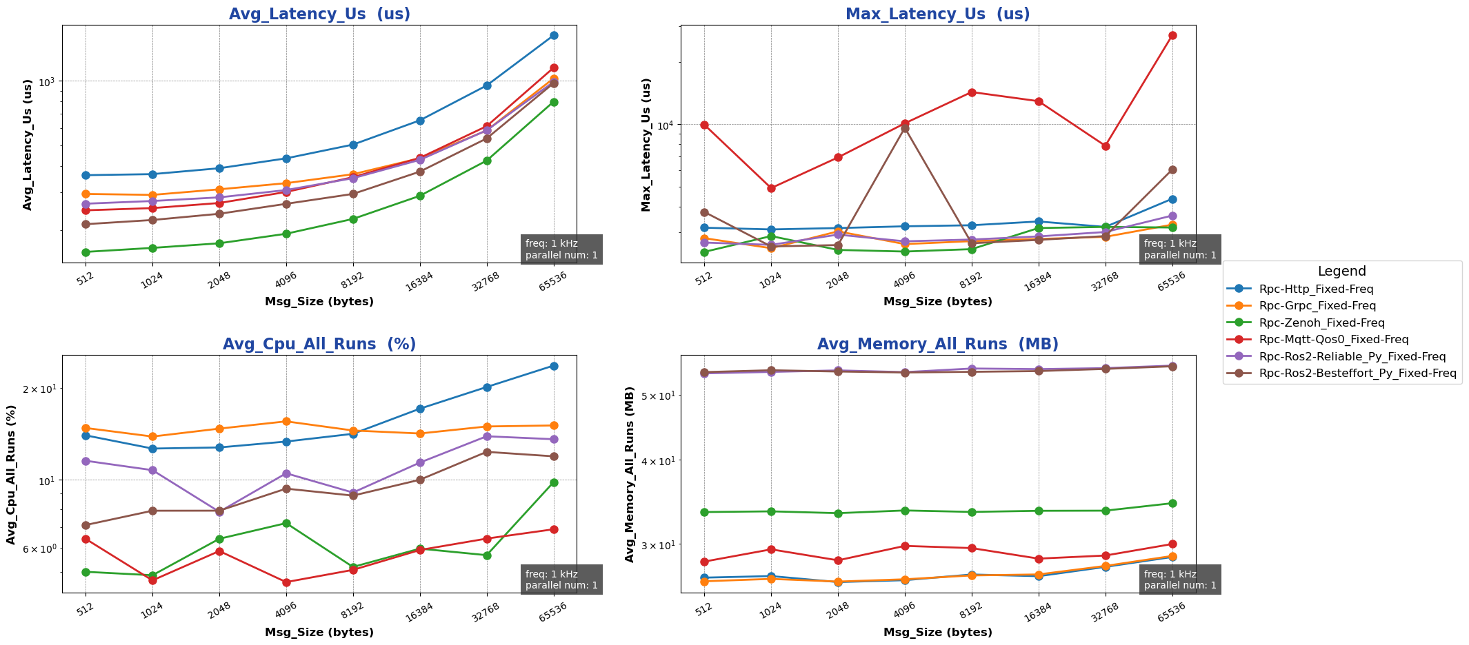 • Test Purpose: Evaluate the performance of the single-machine cross-process Rpc backend in fixed-freq mode under different packet sizes