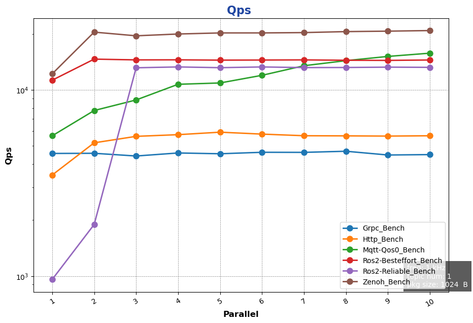 • Test Purpose: Performance test of single-machine cross-process Rpc backend under different packet sizes in fixed-freq mode